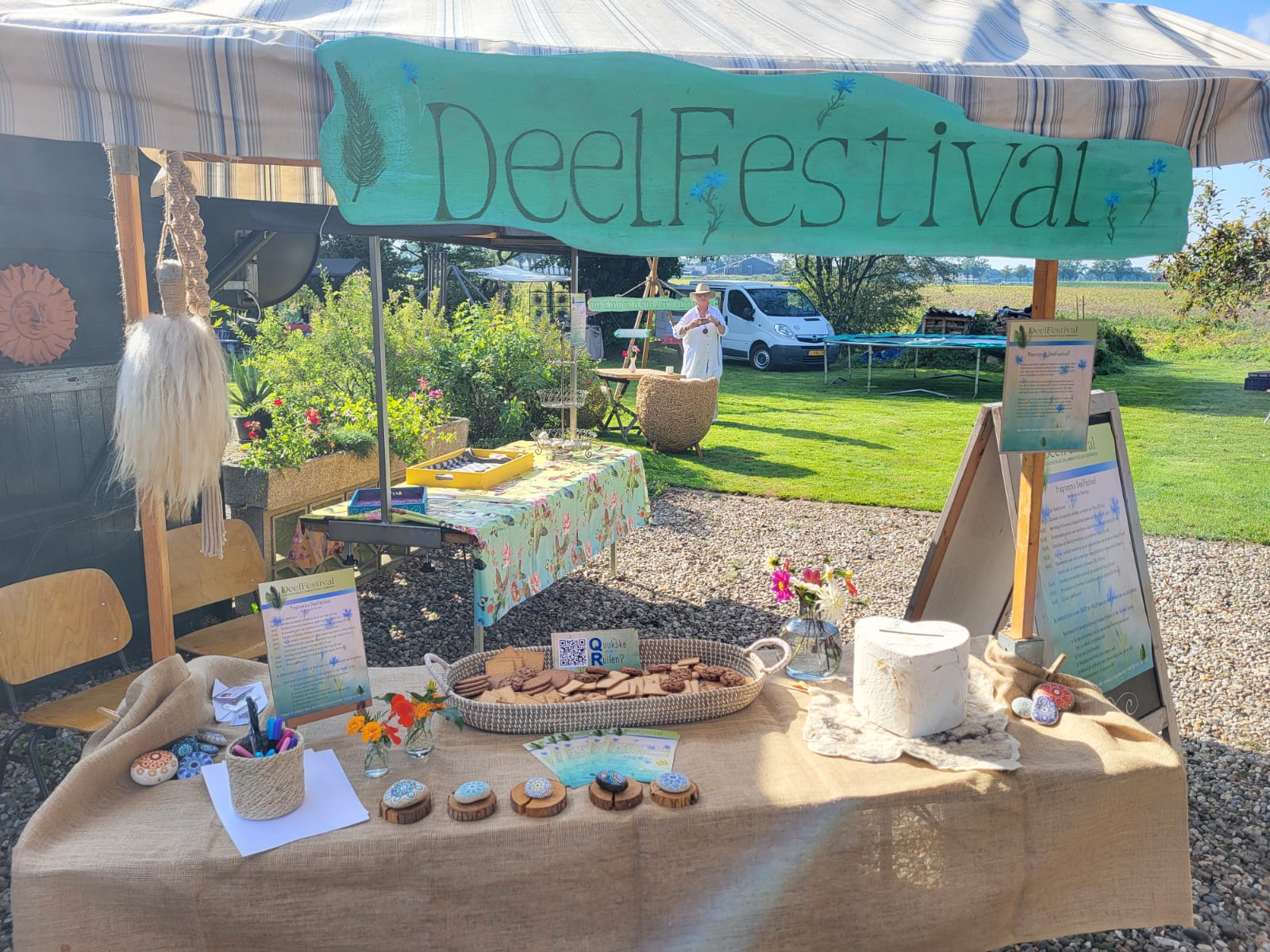 Wat een overvloed ervaarden we in de lekkerskraam. Er was geen entreeprijs, maar een vrije bijdrage of iets lekkers om te delen. We zijn superblij met dit eerste deelfestival en organiseren graag op 28 september 2025 de tweede editie van het DeelFestival. Deze keer zal dit plaatsvinden in Heeze, bij De Kleine Stroom: www.dekleinestroom.nl