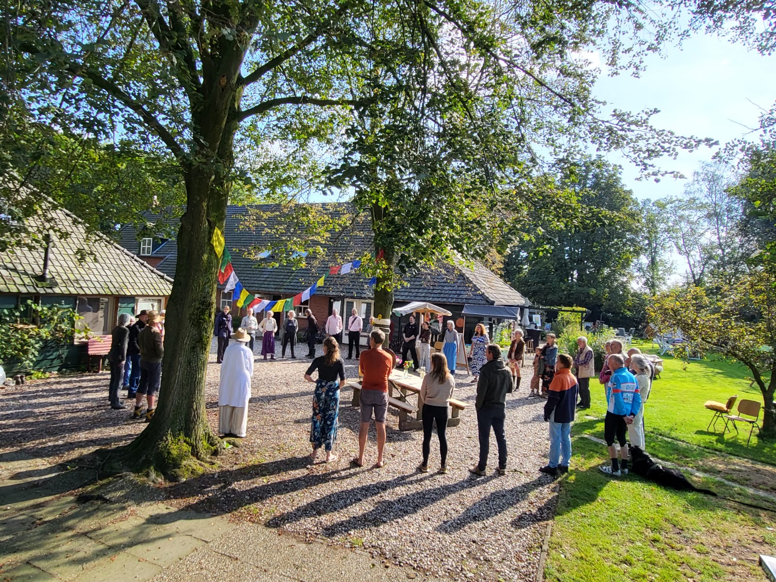Stel je voor, de vroege ochtend van zondag 15 september. Het belooft een mooie, zonnige dag te worden. Alles rondom de Lambertushoeve is in afwachting van wat komen gaat en wie komen gaan. Vanaf het allereerste moment dat de deel-nemers hun ruimte in orde hebben gemaakt en we samen (incl. alle vrijwilligers) de finishing touch aan het festivalterrein aanbrengen is een zinderend soort energie voelbaar. Een verbindende energie, die de rest van de dag alleen maar sterker zal worden. We hebben de dag geopend met alle deel-nemers en vrijwilligers in een cirkel bij de welkomstkraam. We hebben samen de dag geopend, de verbinding met elkaar en met het deelfestival gelegd. Iedereen kon een bloem in de bloemenband die rond de Lindeboom hing steken. Muziek klonk…