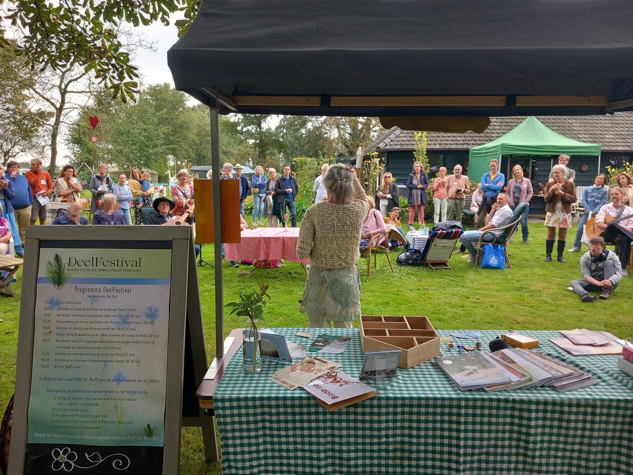 Zowel deelnemers als bezoekers hebben genoten van deze dag. Er is veel gedeeld, gegeven en ontvangen. Dit ging in de vorm van contact leggen, kennis delen, informatie uitwisselen, live muziek, lekkers en ook verschillende producten/diensten zijn geruild (of verkocht). Het deel-moment aan het eind van de middag werd goed ontvangen. Zowel deelnemers als bezoekers mochten bij ’t Hart van het festivalterrein delen wat zij van harte wilde delen. De luisteraars zaten gezellig op alle zitjes rondom de Kastanjeboom.